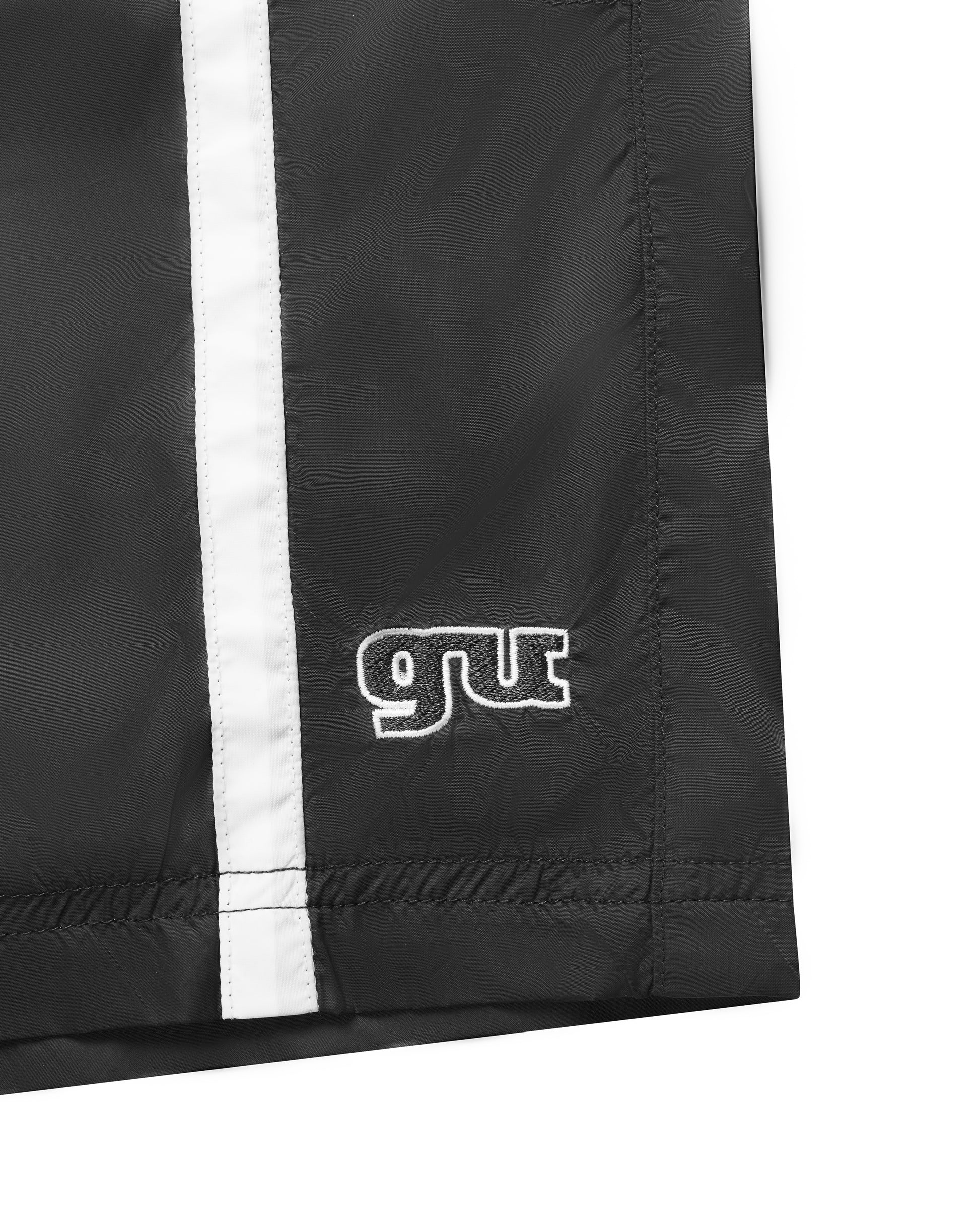 Classic fit nylon water short with a mesh brief, elastic waist . Maryse Seigu embroidered black logo on left leg.