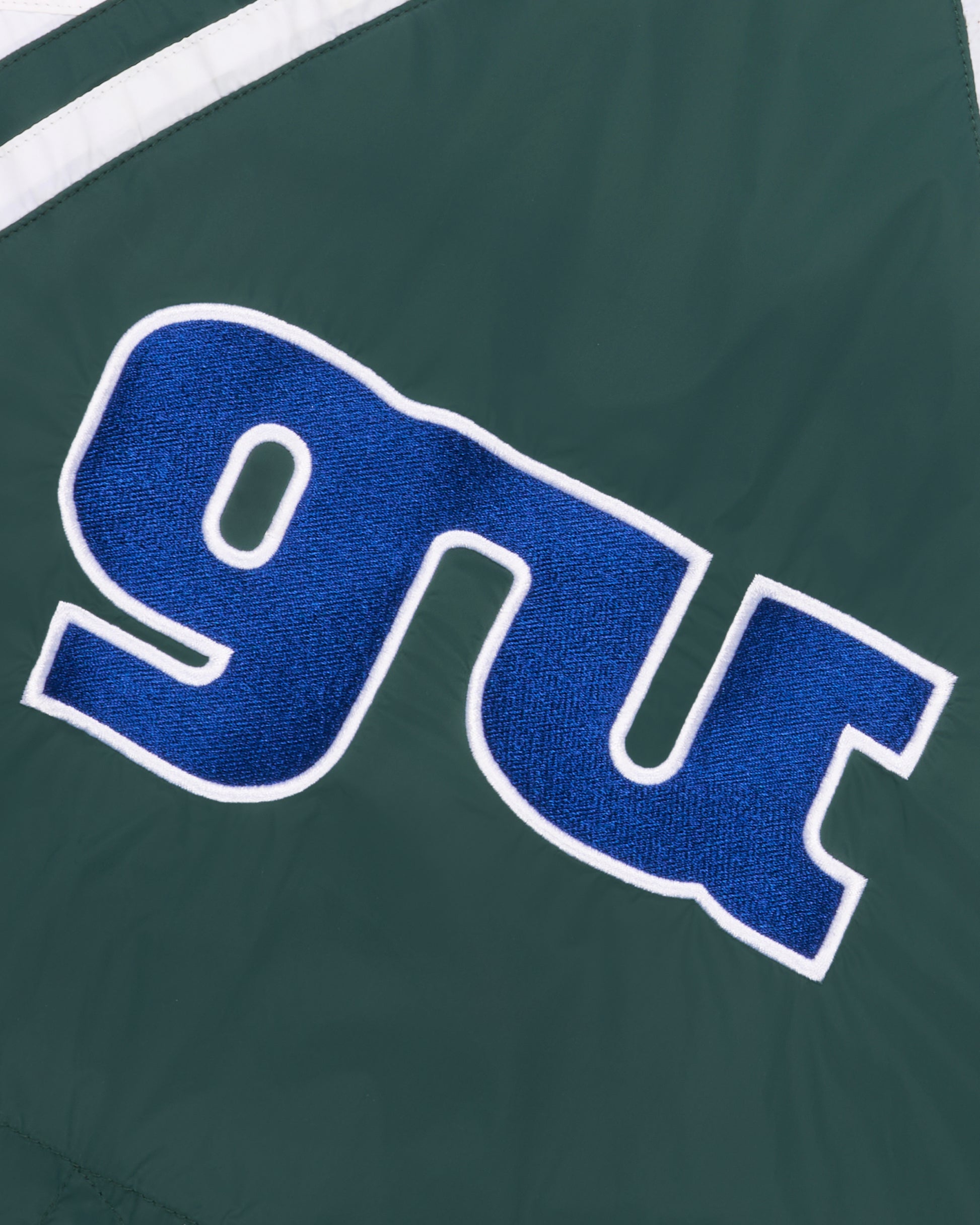 Relaxed fit shell jacket in Nylon. Features a rear vent with interior mesh panel. Blue Maryse Seigu embroidered logo across the back.